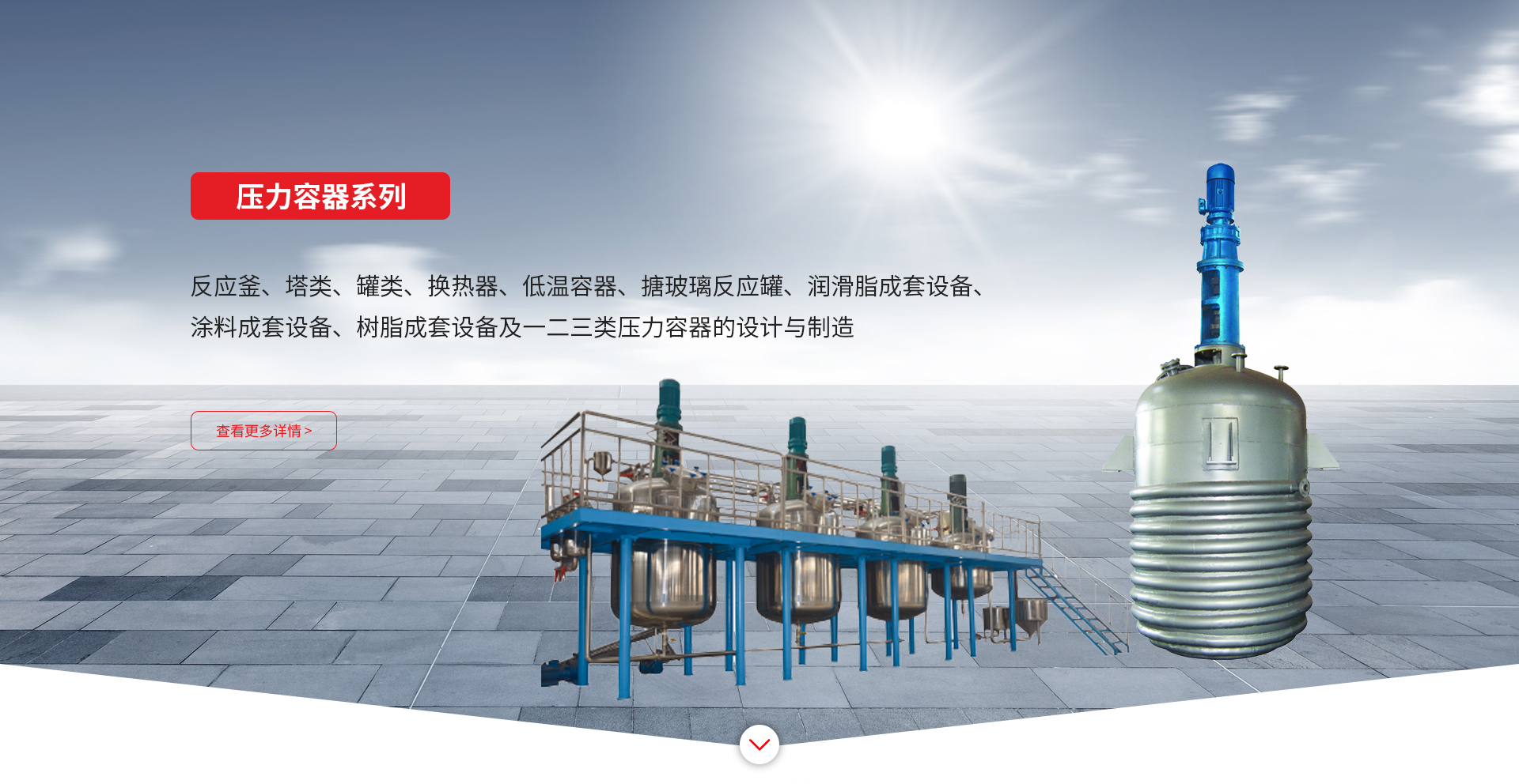 公司設備分類齊全,有分散研磨系列;干粉混合攪拌系列;高粘度混合捏合系列;壓力容器一二三類;鍋爐、油爐系列;液/固態發酵及麥芽設備和其他成套設備,是國內長江以北具有規模化,產業化的化工機械設備生產基地。